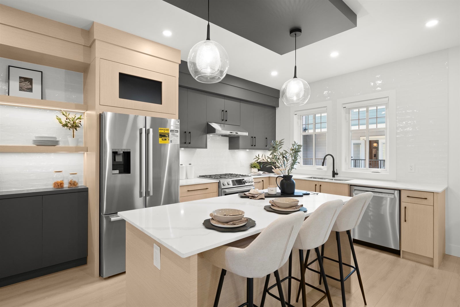 Step into your dream home with this stunning 3-bedroom townhome at Apex Homes - designed for those who value both style and functionality. The open-concept main floor, with its over-height ceilings, creates a spacious and light-filled environment perfect for hosting friends or enjoying cozy family time. The kitchen is the heart of this home, featuring custom wood cabinetry, state-of-the-art stainless steel appliances, and engineered quartz countertops - bringing both elegance and practicality together in one beautiful space. Whether you’re an aspiring chef or just love a space that’s both beautiful and functional, this kitchen is ready for whatever you cook up. *NOTE: Images from Unit #1 (Unit #2, #4 & #6 SOLD!!!); Open House Sat, Sun 2pm-4pm.